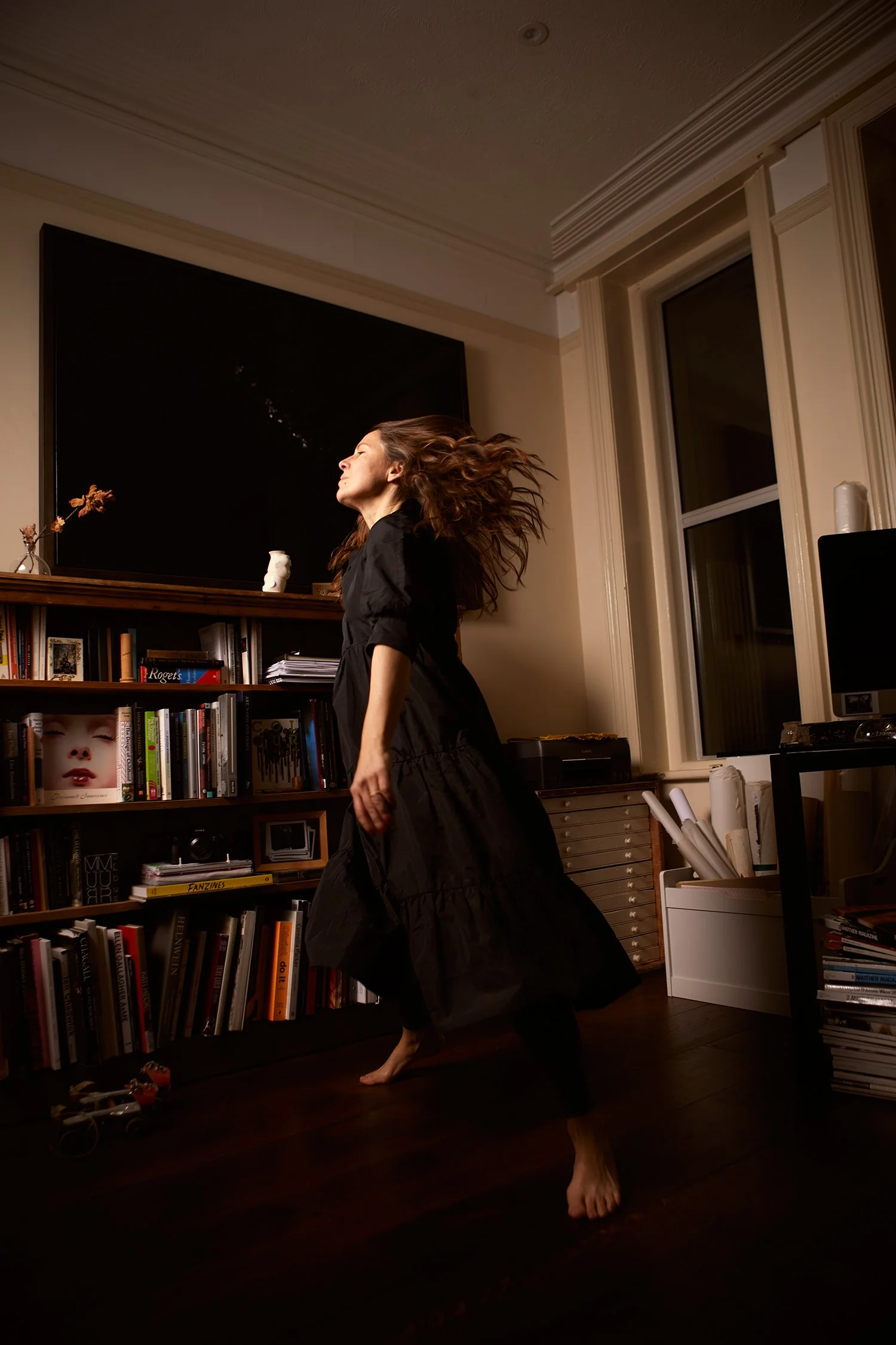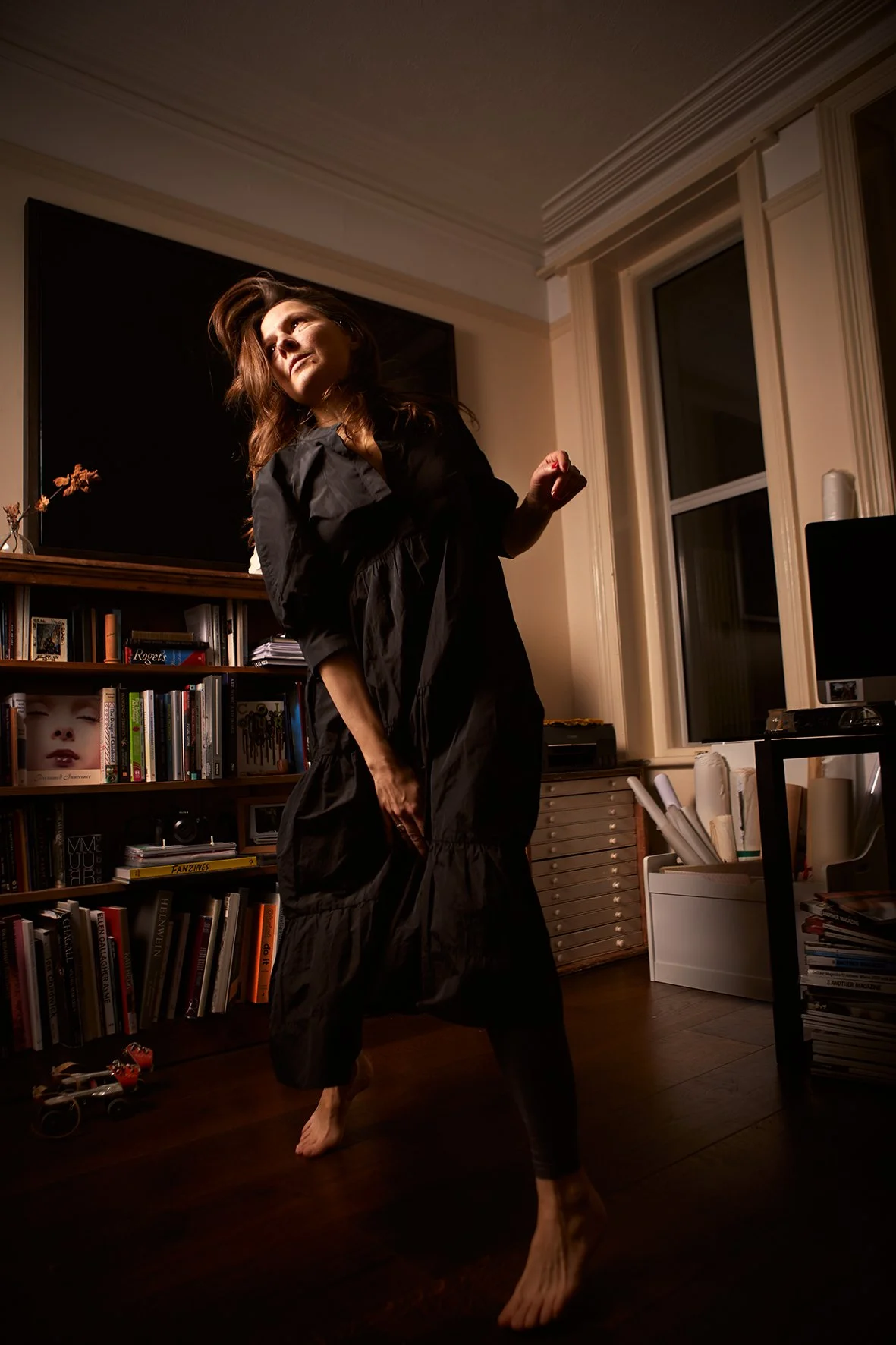 Eloise: You came to my studio, and we sort of settled into the space together. I remember we talked about my work, the themes in it, light and shadow, especially, and you incorporated that into the portraits. It felt like the studio became part of the image, not just the setting. We experimented with different lighting and poses, and then I started talking about dancing.